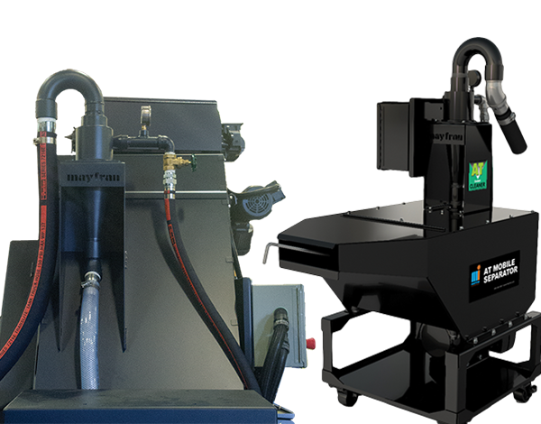 This portable AT-Cleaner separator system offers the same cyclonic cleaning but with the added advantage of being able to move between machines. The AT Mobile Separator utilizes a heavy-duty marine duty pump and an external sludge bin for easy cleanup and removal.